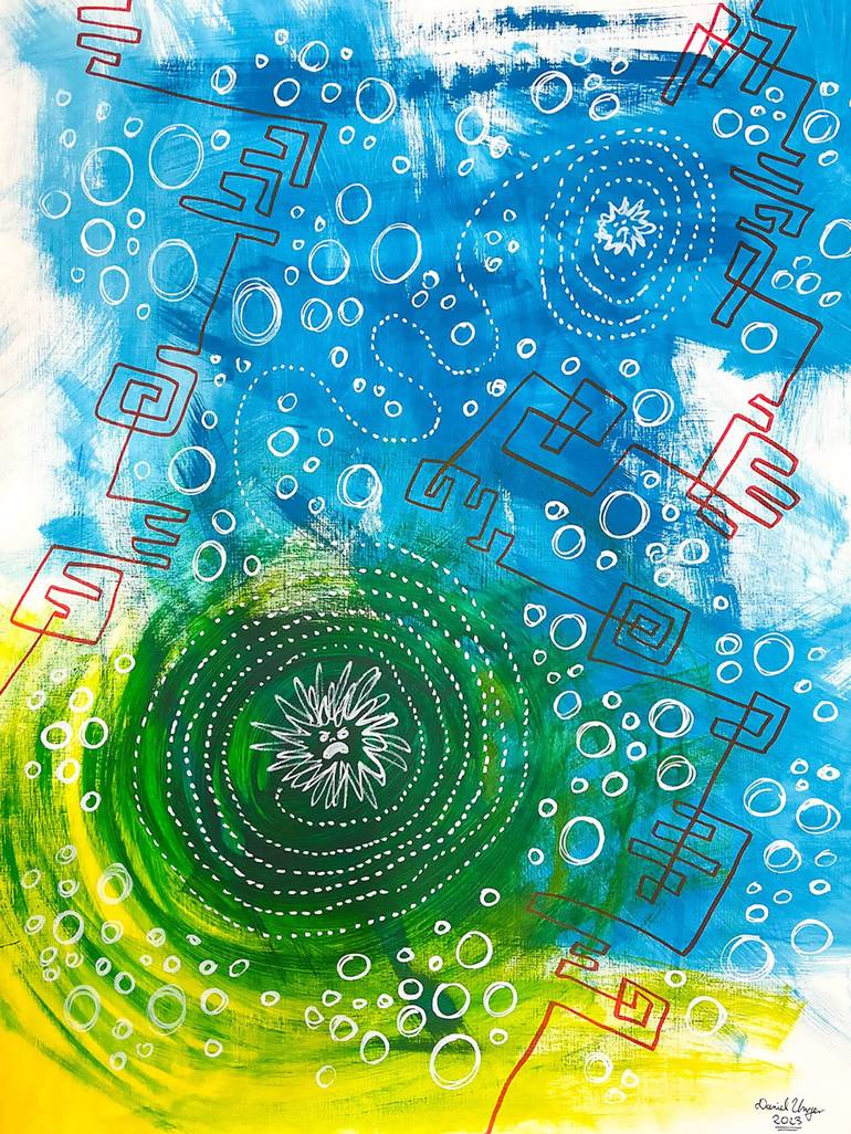 This abstract, nonsensical painting is part of an evergrowing series of works and was done solely to have some sort of natural remedy for my insomnia. Whatever came to my mind at the time, no matter how random or disconnected the notion, was painted onto the canvas. The entire painting was done by u...