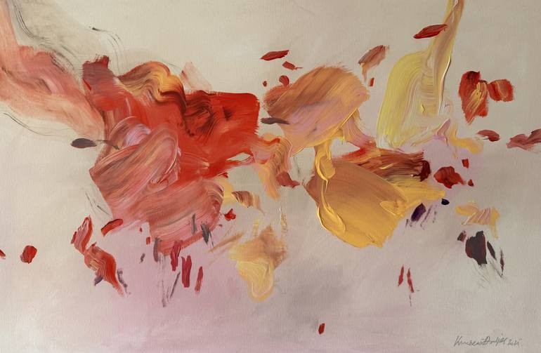 This artworkwas created in 2025. It is rich in brushstrokes placed on a fluid background.