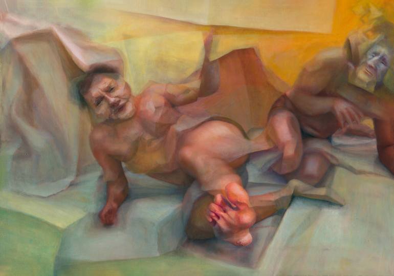 I work with oil painting and photography. This artwork is based on these two media but is eventually a painting. This painting is inspired by fantasies of 2 people who are connected but wish to be released. It's not possible since they have a link that can never be broken. This is a remainder about ...