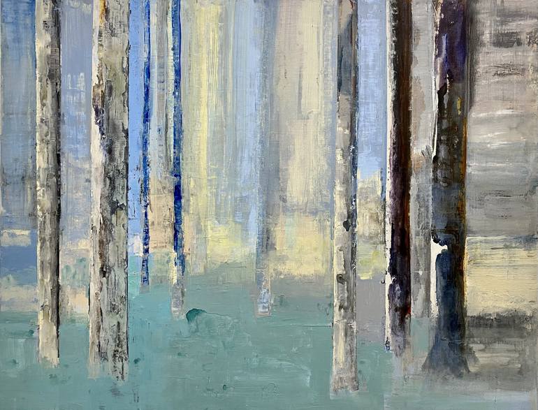 Helmuth van Galen (1955) lives and works in Haarlem, the Netherlands. After his training as a teacher, Helmuth traveled through France on a bicycle for a year. He did a lot of work to survive. He made many studies after nature and sold his work at various exhibitions. After working for a short period as a teacher, he followed the training at the art academy Gerrit Rietveld in Amsterdam) 1979-1981) Then the art academy for Beeldende Vorming, also in Amsterdam (1981-1985) Helmuth works on a single theme for a long time. As a result, he explores the many possibilities of this theme. "There are so many unpainted paintings." From 1995 to 2000, Helmuth painted the series "Inside Space" Fantasy-styled architectural spaces. Like the interior pieces of the famous Dutch 17 e century Golden Age of Vermeer, Terborch, Metsu or de Hoogh. But then stripped of all the details. Horizontal and vertical rhythms play dominant role and thus give a depth effect. Large dark silhouette shapes form a big contrast with the colorful background. Some works can be found on the website of Helmuth van Galen. In 1998 Helmuth was nominated for the National Price of painting of Kampen and nominated for the “Internationaler Syrlin-Kunstpreis” in Stuttgart, Germany. In 1992 Helmuth participated on a large exhibition “Europ’Art Palexpo” in Geneva. On invitation to take part in an exhibition about landscape, the vertical paintings now became horizontal Outdoor Spaces. "Outdoor space" Although the works do refer to landscapes, I prefer the name Outdoor Space. The paintings are not painted according to examples or perception. All outdoor spaces are imaginary. All images that are now - and ever - observed in the outdoor space are stored in the head and partly forgotten. For me as a painter it is interesting how elusive images from the memory slowly get a solid form from many layers of paint. A renewed acquaintance with the Outdoor Space. With painting these outdoor spaces, Helmuth seeks an exciting balance between recognition of the landscape and a degree of abstraction. The visual memory of a moment is rarely sharp, clear or concrete. My memory image consists of countless transparent moments. Overlaid. From this tangle of images I distill a new outdoor space. To a greater or lesser extent to be named and recognizable. A new Outdoor Space? Or did it already exist. A possible (new) reality. Or is it now the world in my head.