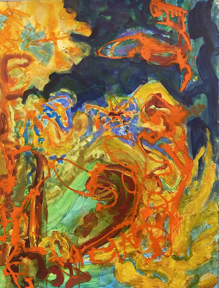 I paint in an abstract random process. Marks and gestures take on a life of their own but suggest a life somewhat familiar.
