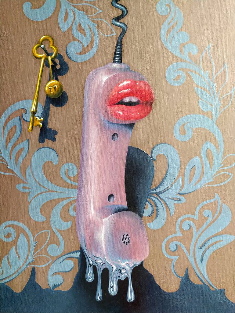 Are you sure you’re not tired? You’ve been running through my mind all day... 👄☎️🗝️ Unique, one-of-a-kind, emotional surrealistic oil painting on canvas panel 30x40cm The certificate of authenticity is attached