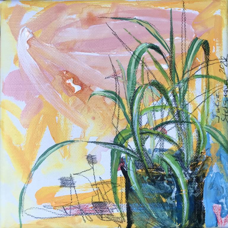 Expressive and gestural painting. Portrait of a spider plant names Iris. Chlorophytum. From Houseplant series. * Acrylic on linen * Varnished with UV-protection * Signed by artist on front and back * Ready to ship in 1–3 business days. * The perception of colors depends on the monitor and can be...