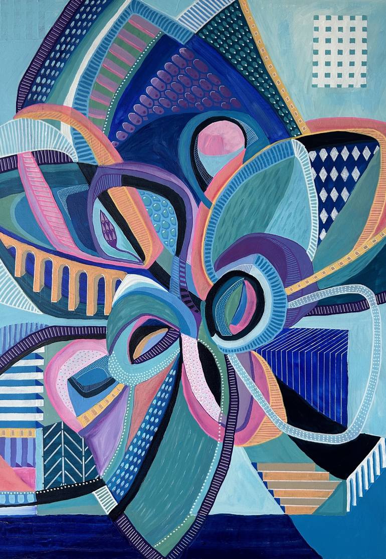 Samantha Malone is an Australian/Israeli artist based in Tel Aviv. Her work is about movement, balance, and the way shapes and color interact on the canvas. She is interested in creating compositions that feel rhythmic and alive, where structure exists but doesn’t feel rigid. Geometry often sits at the base of the work, softened by intuitive marks and a more fluid process. She works with acrylic paint and mixed media, building layers of color, line, and pattern. Shapes are adjusted, broken apart, and reworked, with sometimes parts of the surface scraped back to reveal what came before. This layering adds depth and keeps the work open and dynamic. Color is central to her art practice. She use contrast and repetition to create a sense of flow, inviting the eye to move across the surface and linger. The paintings are abstract, but they aim to feel playful, considered, and connected, leaving space for the viewer to bring their own meaning to the work. Samantha has exhibited internationally, including participation in the prestigious 2023 London Art Biennale. Her works can be found in private collections across Europe, the UK, the USA, Asia, Canada, Australia, the UAE and Israel.