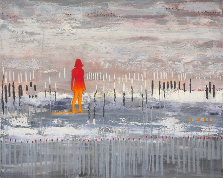 I love to place the human figure in vast, colorful semi-abstract landscapes. In some works my figures are depicted as an outline which has been filled in with various colors and shapes - as if the human form is a 'container' - of emotions, thoughts, memories. In other works, there is a more realisti...