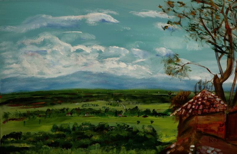 I love Europe. When in the countryside there I always feel peaceful but also a sense of well-being that comes from the fact that its history is long and the land has a timelessness about it that offers some kind of gentle comfort. This scene inspired such feelings. This is painted on gallery-wrapp...