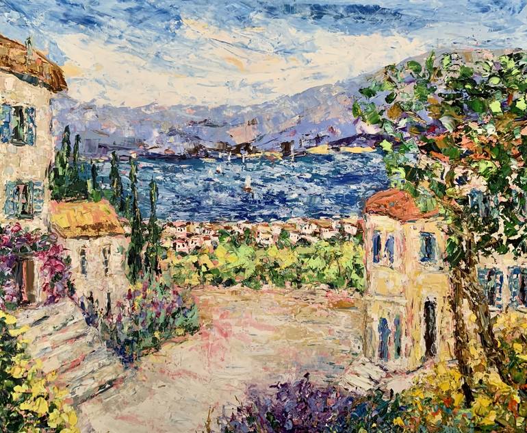 Italian Riviera Landscape Impasto Oil Painting On Canvas *Title: „Italian Riviera landscape“ *Size: 23.6"x19.7" [60x50 cm] *Original handmade oil painting on canvas by brush and palette knife. *Made by me - Vilma Gataveckiene. This is not a copy or a print. *Signature on the front and...