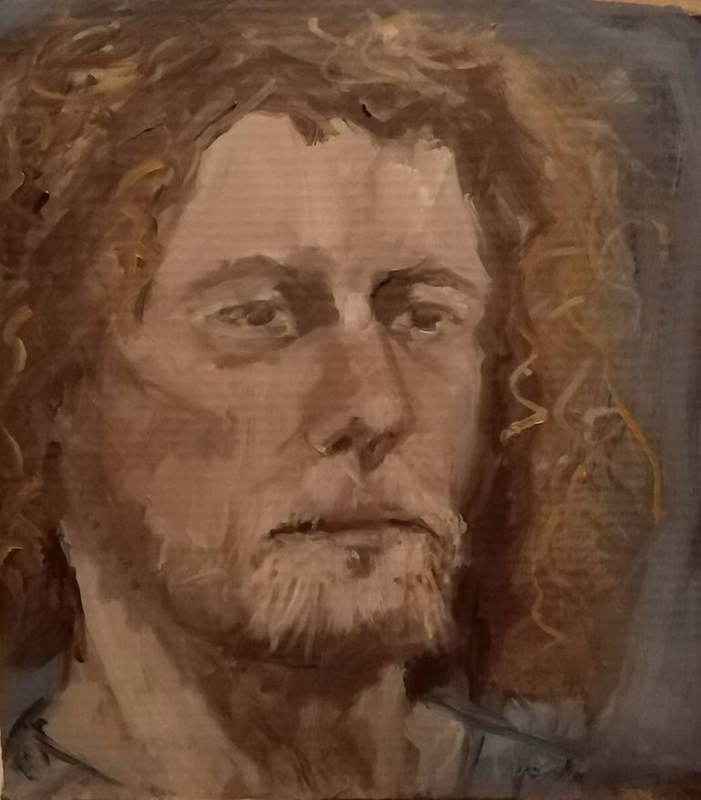 This was the first time he had sat for a portrait. He was anxious about not fidgeting and so was concentrating hard on holding the pose. Afterwards he said that it was a relaxing, meditative experience and I think this shows in his expression. I hope the viewer will get the sense of his gentlenes...