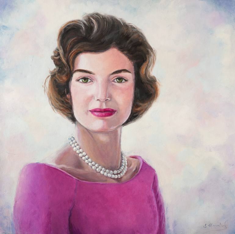Seemingly known woman with past history and mystery. In this portrait she was young and in the source photo John Kennedy was with her...