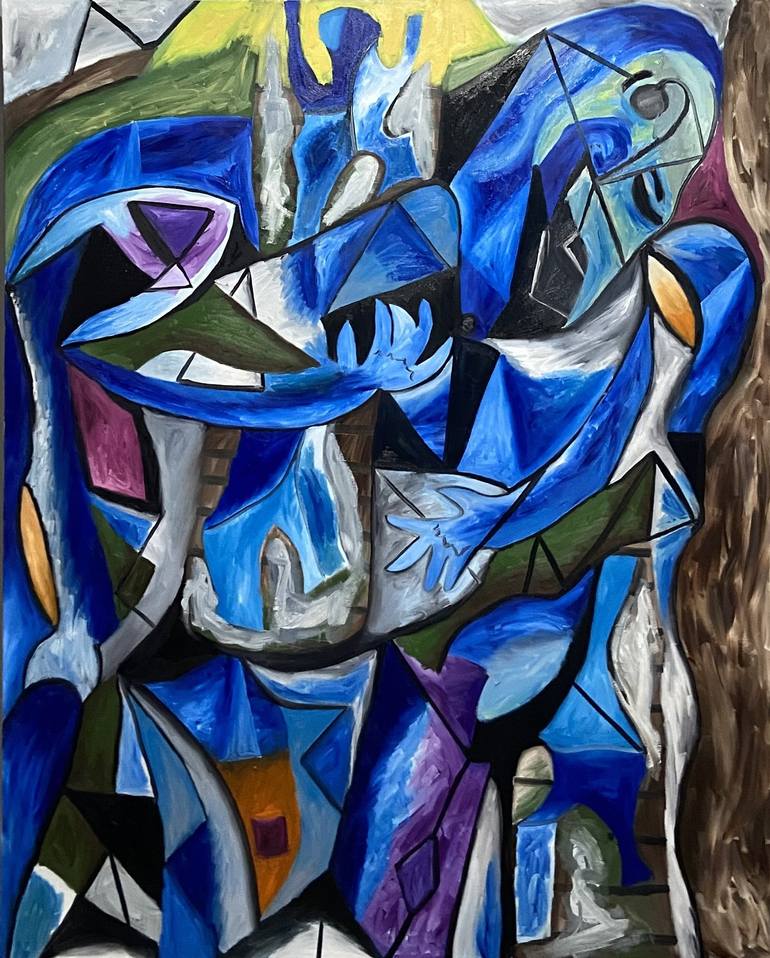 After endless trips to the Philadelphia Museum of Art every week while I was in college, I longed for an expression other than always trying to articulate myself and be understood. I would draw here and there and paint but it wasn't till those museum trips seeing each painting filled with a story and made me start to question. I started studying philosophers and artists, how they were able separate from the norm then comeback with a new idea. I started to live that way I separated from what I was told and dove into the arts and different ways of thinking then brung those ideas to the canvas. I base my paintings off of Soren Kierkegaard's Either or, the idea of aesthetic vs ethics and how someone chooses unconsciously or even consciously, if they are someone of aesthetics or someone who lives by ethics so in each painting I try to replicate those ideas.