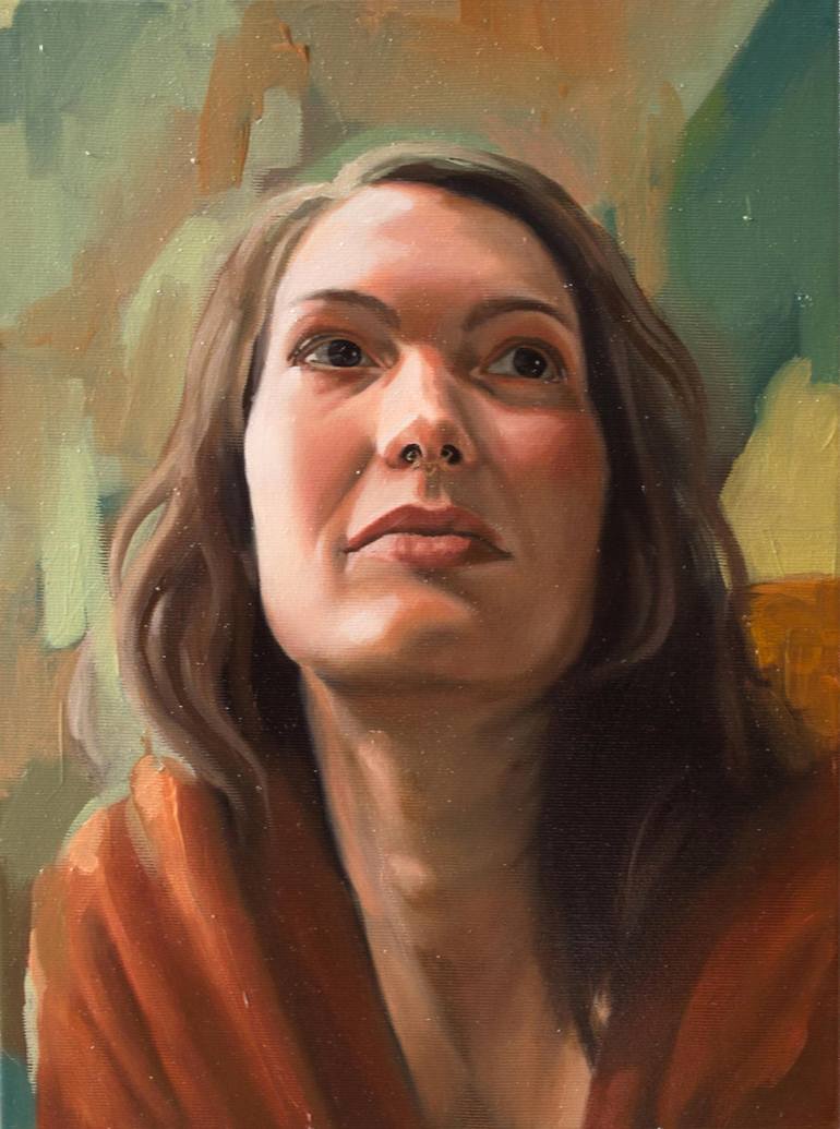 Portrait of a girl with brown hair. This painting is part of a series inpired by Biblical figures.