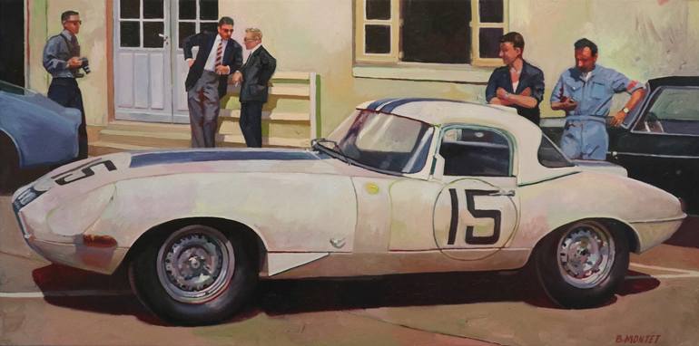 Benoît Montet nous transporte aux 24H du Mans dans les coulisses de l'écurie Jaguar. Cette scène des année 60 est parfaitement réalisée et si bien détaillée. La technique artistique de l'artiste est toujours aussi précise et spectaculaire , surtout lorsque l'on s'attarde sur les détails et les effet...