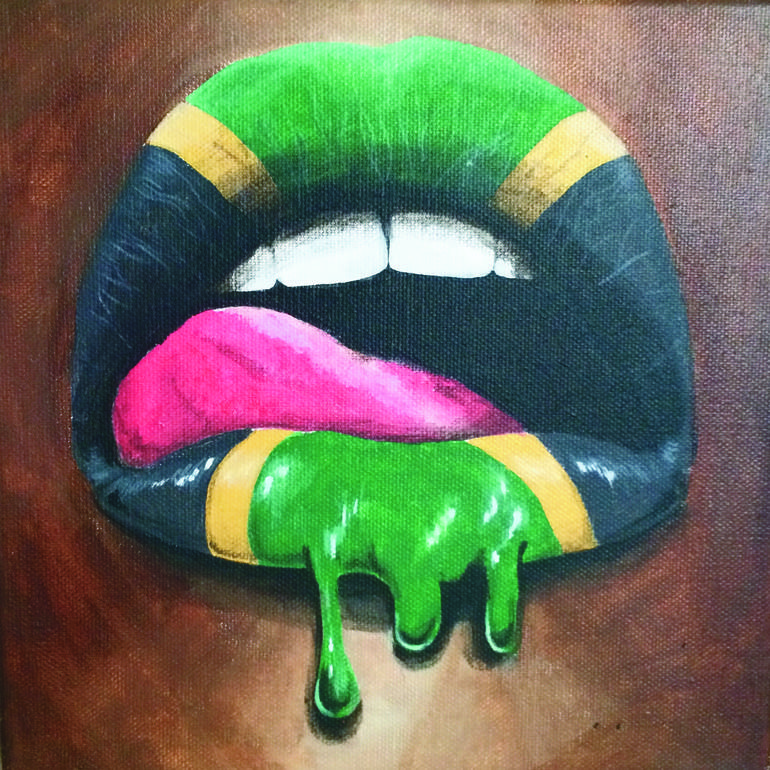 I love this idea of raw nationalism. People often refer to their country of origin as the “motherland”. I thought about what that would look like personified, especially her lips. She would have to be seductive and enticing, vibrant and bold yet also coy and flirty. When she kissed you she’d lea...