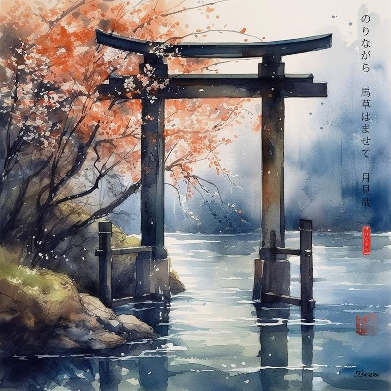 This is a vibrant print of a watercolor Japanese nature scene, created using syntography by Ksavera. The print captures the essence of Japanese classical lifestyle, and the addition of the haiku adds a touch of cultural flair, making it a perfect piece for any space. It will bring a unique touch of ...