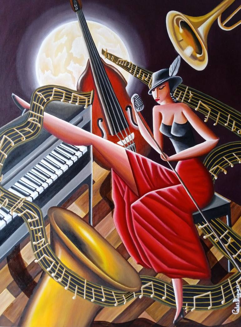 This artwork seeks an end, the integration and representation of the fine notes of jazz with female vocalization in a night full of passion. seeks to transfer the viewer to this composition. The female figure full of passion, the night, the musical instruments make this unique artistic work. Over th...