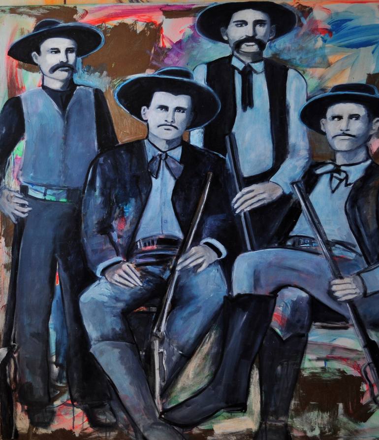 The Jesse James Gang is from my series: Heroes, Outlaws, Angels & Rebels. Over the years I occasionally add an inspired image of someone who epitomizes, for me, the concepts in the series title. Obviously we are looking at Outlaws. It's been a much complimented work of art while in my own collect...