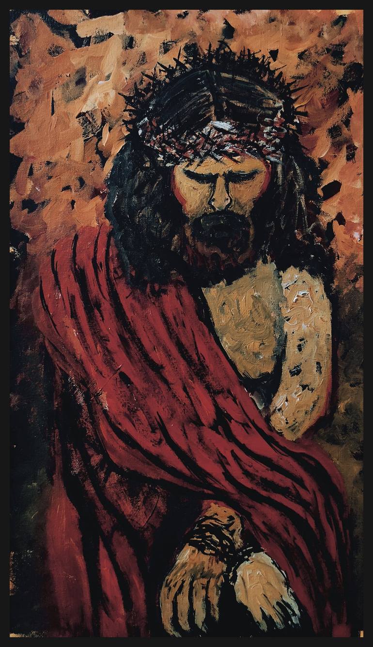 Jesus Christ semi abstract painting made with raw acrylic paint heavy brush strokes