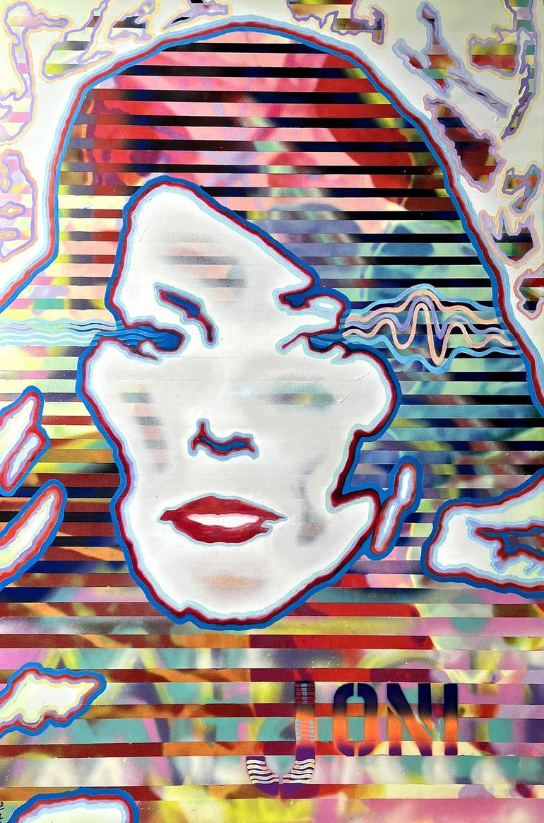 This painting belongs to a series I started in this summer dealing with the iconic image of Joni Mitchell's face depicted on her album "Hejira". I used a stencil template which was sprayed on various image carriers like vinyl, canvas, paper and also for the use of a mural graffiti which can be seen ...