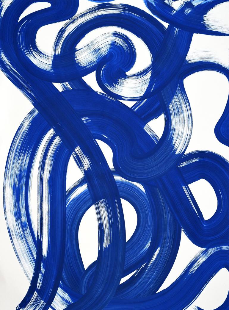 The joyful flow of abundant energy, the riding of the high winds. Layers of blue tones acrylic brush marks on acid-free paper. See texture detail photo. Ready to frame.