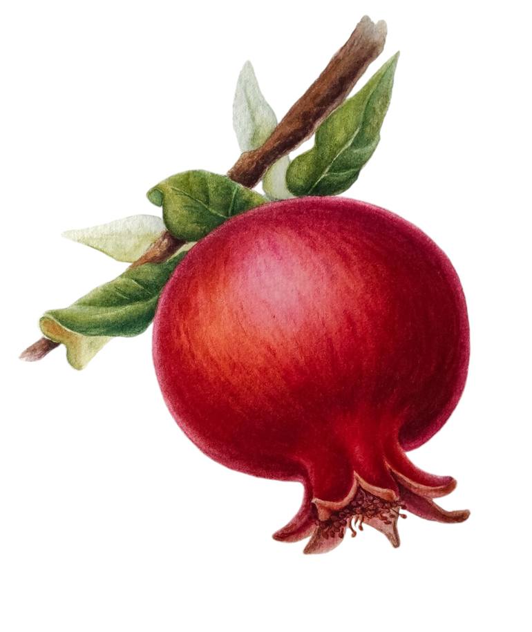 In this captivating artwork, the artist masterfully captures the essence of a ripe, juicy pomegranate. The vibrant red hues symbolize vitality, eternity, love, and marriage. The lush, organic nature of the fruit bursts with energy and health, resonating with the themes of life and nourishment. The d...
