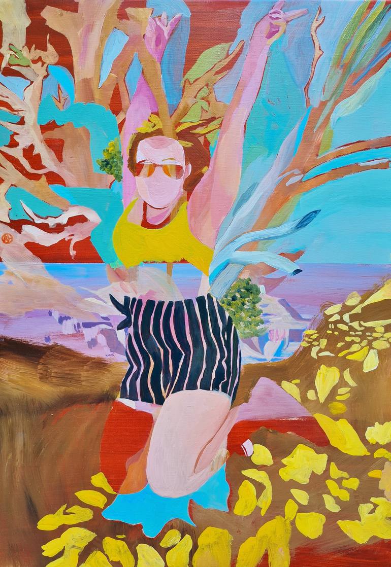 The figure is jumping for joy and as in my others paintings it disappears to let the background explode. It takes place in Grand Canyon, one of the most amazing landscapes I've ever seen in my life. This painting express my felling when I saw Grand Canyon for the first time. I'm really concerned by ...
