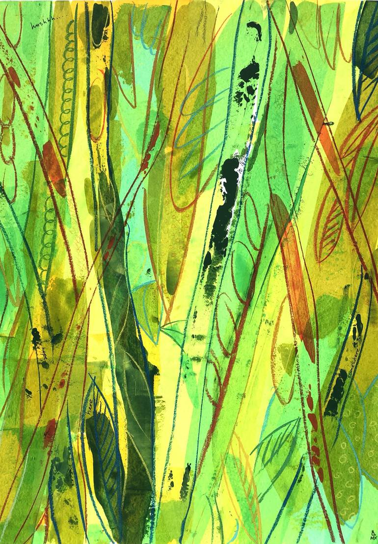 (hushhh... / it is... / hope / here / somewhere) #3 from abstract botanical "Jungle" series. My “Jungle” series have vibrant colors and lots of secrets that are hidden behind the trees. Making many layers as usual, I place there some hints to such stories, so you can search for them and create your...