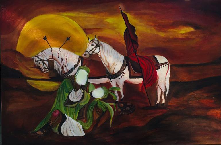 THIS NARRATIVE OIL PAINTING IS BASED ON TREGEDY OF KARBALA. TRAGEDY OF KARBALA IS ONE OF THE MOST SIGNIFICANT EVENTS TOOK PLACE IN HISTORY OF MANKIND. KARBALA IS NOT ONLY FOR MUSLIMS BUT NON MUSLIMS ALSO PAY HOMAGE TO HUSSAYN IBN ALI. MILLIONS OF PEOPLE GATHER EVERY YEAR IN KARBALA IRAQ TO PAY THEIR...