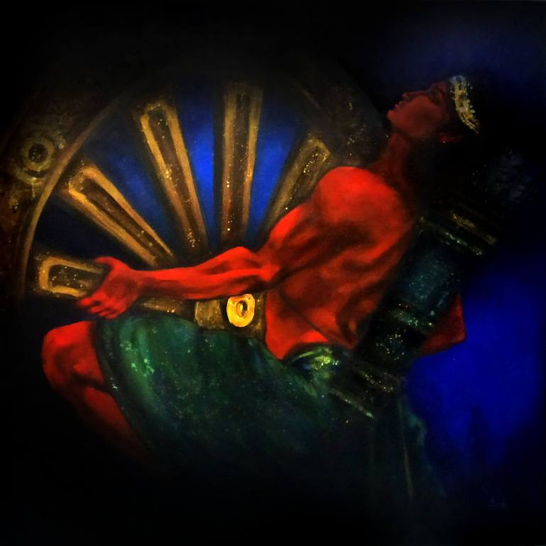 The life of Karna, son of Sun God, was full of tragedies, here he is depicted by red colour to show her linkage with Surya, the sun god. the ultimate one was his death... here is the moment of setting of Karna, the son of Sun .