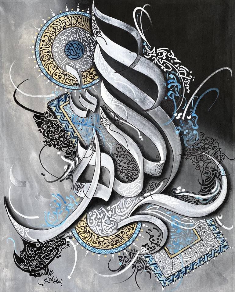 By Sami Gharbi - Tunisia Acrylic and permanent marker on canvas خط عربي بنزرتي و أندلسي آيات الكرسي upon delivery the artwork will be sent not framed. Thank you for passing by and for your interest to my Art world