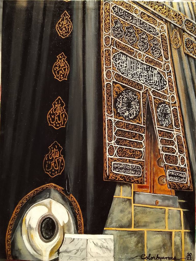 As you gaze upon this magnificent painting of the Kaaba door, you are instantly transported to the holiest site for Muslims around the world. The Kaaba, known as the "House of God," is the focal point of Islam's holiest mosque, Masjid al-Haram, located in the holy city of Mecca, Saudi Arabia. The pa...