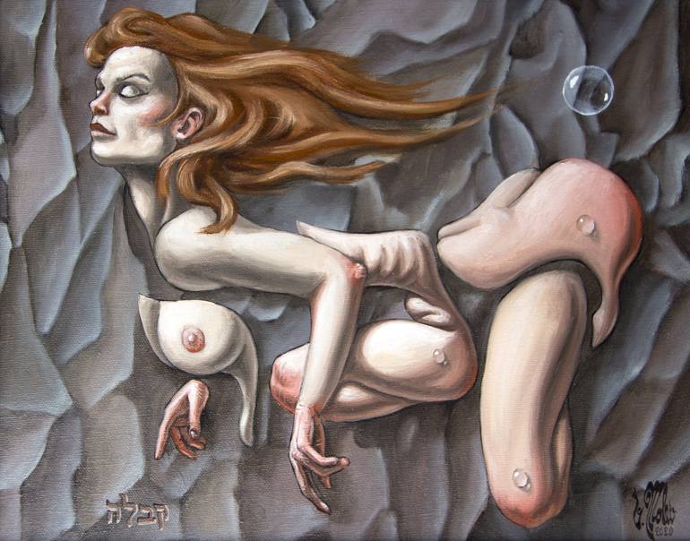 "Kabbalah" 36X28 cm Oil on Canvas,Glued on Panel Surrealistic stylization of the spelling of the word Kabbalah in Hebrew This work is a unique original work of art - Painter - Victor Molev (Canada), Oil on Canvas. The work has a rectangular shape, Its dimensions are 28x36x0.5 cm. The signature of th...