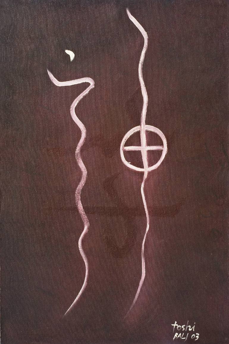 五宝園 GOHOUEN TOSHI (TOSHI) JAPANESE CONTEMPORARY ARTIST I was born in Yaotsu-town, Japan. (home town of Mr. Chiune Sugihara) Contemporary artist (calligraphy) mystic, poet, novelist, traveler, cosmopolitan 1995-1996. I started my art activity in Auckland, New Zealand. 2000. Moved to Bali Island (sanctuary) and continued producing art work. [[[The Way Of The Artist]]] I visited Bali unexpectedly in November 1996, where I had an experience of mystical encounter at Kuta beach, during the night on December 5th After that extraordinary event, I was led by a mystic to a town in east Java, where I had other spiritual encounters, which have forever changed my philosophy of life and affected my art style dramatically. I have been searching for the truth of the Universe, trying to express this through artistic activity, continuing to express the Divine in my work since the day I moved here. [[[Rites Of Passages]]] I practice meditation and put all other thoughts out of my mind before I start to produce new work. I never start a new piece without clearing my mind first: this is my attitude toward my art work. [[[My Calligraphy]]] In a word,my calligraphy art is like "creation of an eternal moment." so that's why I must fix the soul for that moment. Because failure will not be tolerated. After a revelational experience in Kuta Beach, 1996, I made a decision to express only KAMI (God,super natural...etc) through calligraphy, until I die. So when I create calligraphy simbol for KAMI (God ,The super natural...etc), each shape is different, but the meaning remains the same. [[[My Kakejiku Art (Scroll)]]] My Kakejiku art aims to express the harmony, and transcend the borders between the countries, races, colors ,generations, and religions...since, after all, everything becomes from nothing, and vanishes into nothing. Normally, Japanese Kakejiku Art (Hanging scroll art)bound by traditional rules, but I'm trying to transcend that in order to make this art universal. [[[[[[] The details about the Japanese hanging scroll KAKEJIKU[]]]]]] [[[ Motto ]]] 無一物中無尽蔵 (MUICHIBUTSUCYUMUJINZO)