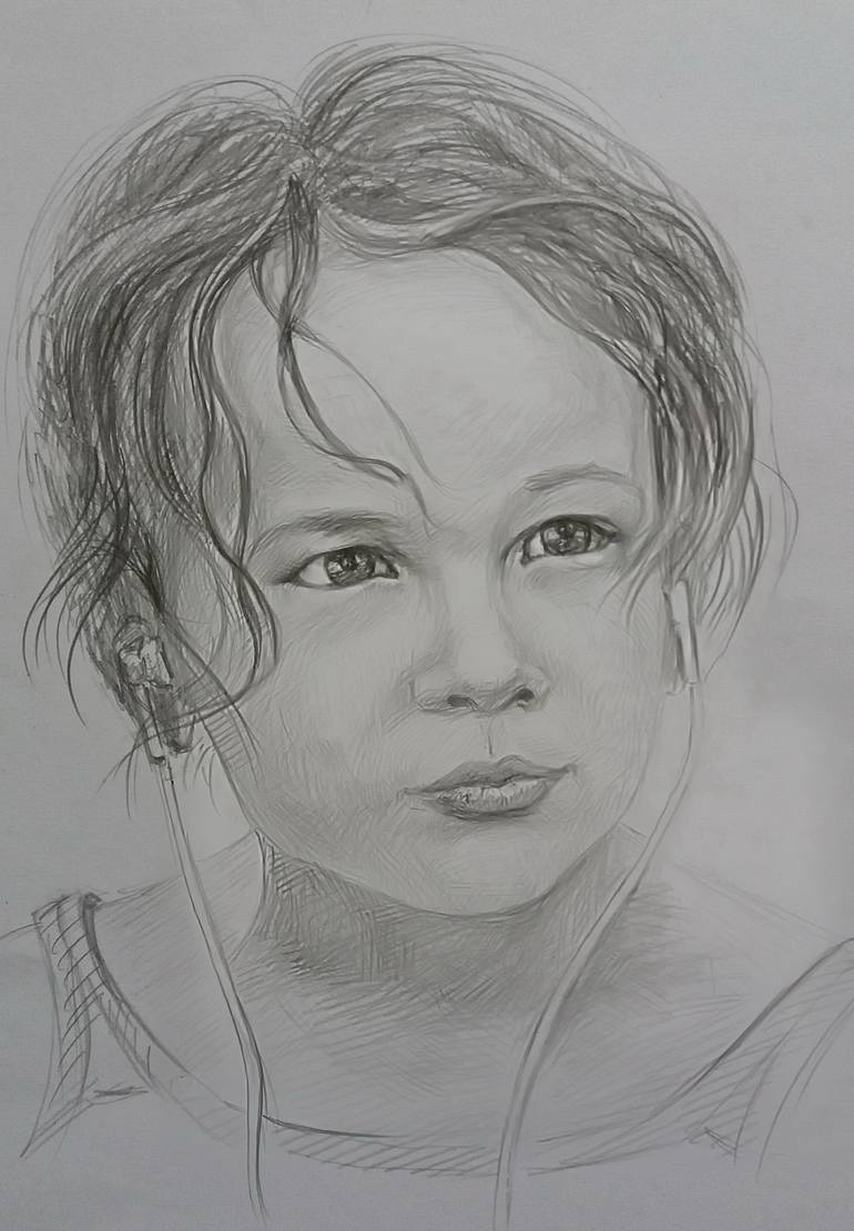 Katyusha- portrait, drawing pencil 42Х30 см. A sketch is drawn in a bus.
