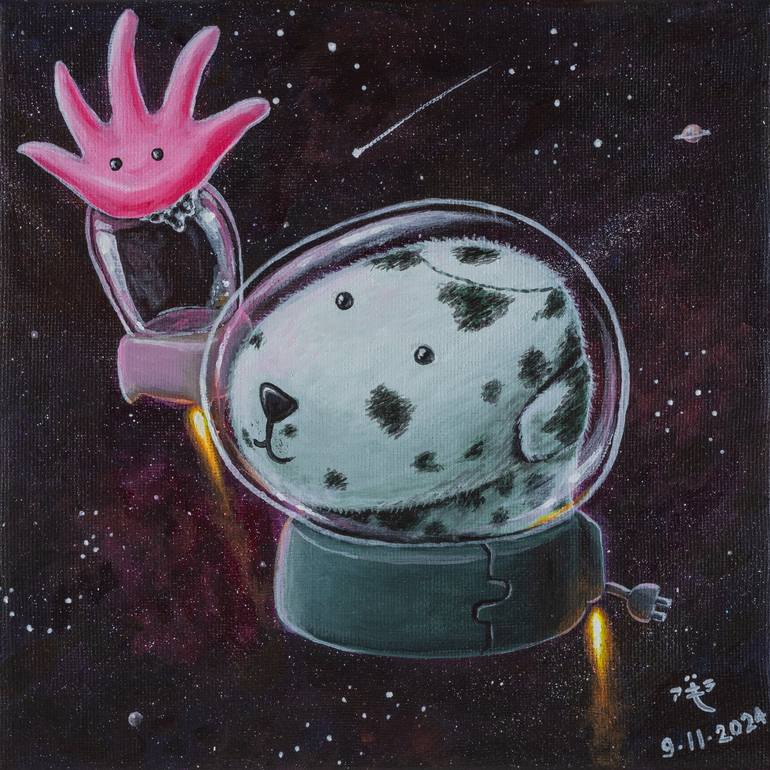 The Kettlr Dalmatian Dog drifts through the dark vastness of space, accompanied by its only companion, a Sea Anemone Blendr. Surrounded by emptiness and without a sense of direction, it may be lost and still unable to find its way home. Yet having someone beside you makes the journey less frightenin...