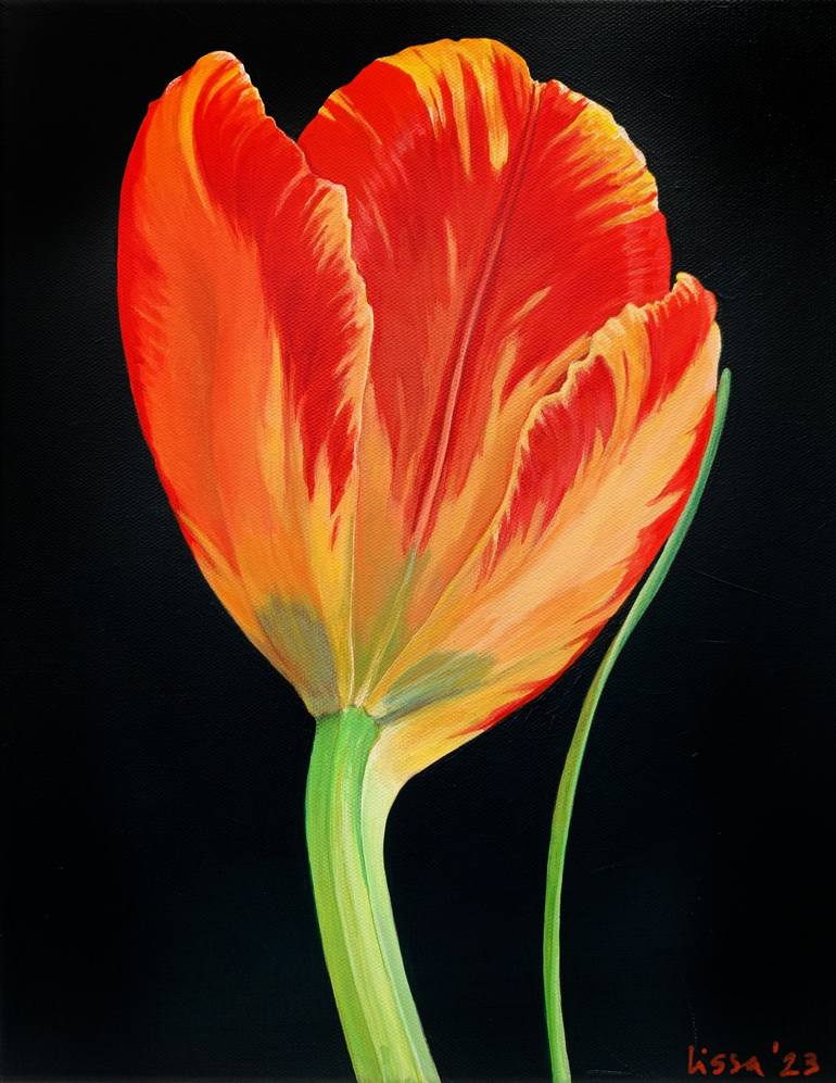 I've been painting flowers, and more often than not, tulips, for many years. They continue to make me happy so I'm going to keep on doing what feels right and good. I wrote a little about my process in a recent blog post that can be found on my website.