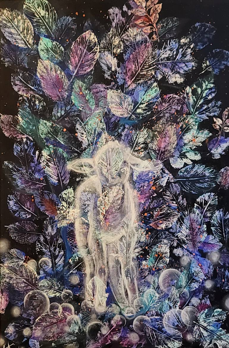 In my painting, there are symbols of faith and biblical allegories. The content of the painting depicts a lamb symbolizing Jesus Christ. Beneath its feet are planets within the universe. Representing Jesus Christ, the Lamb, who became the Lord of the entire universe and came to shed His blood for...