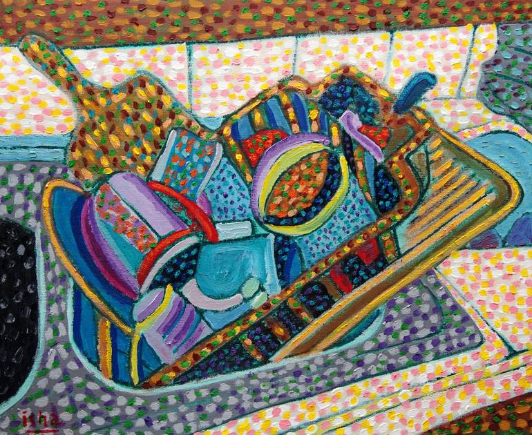 An Expressionist painting of my sink. I was in inspired by the fact that I did the dirty dishes and hadn't had another Acid flashback in ages. Lol. I played with the oil paint on canvas as as a young girl in my barrio screamed in the background. This original oil painting is 16 x 20 inches on 19 x 2...