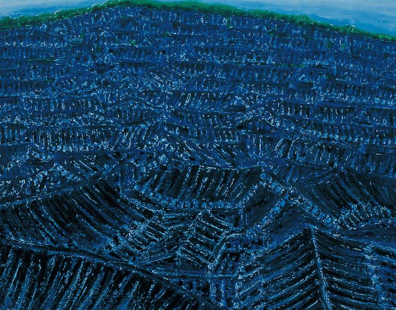 A scene of a traditional Korean house village in Seoul, known as Bukchon Hanok village. These hanok, confined to shrinking pockets despite the city's development. Through this artwork, he aims to capture the enduring essence of Korean architecture and beauty.