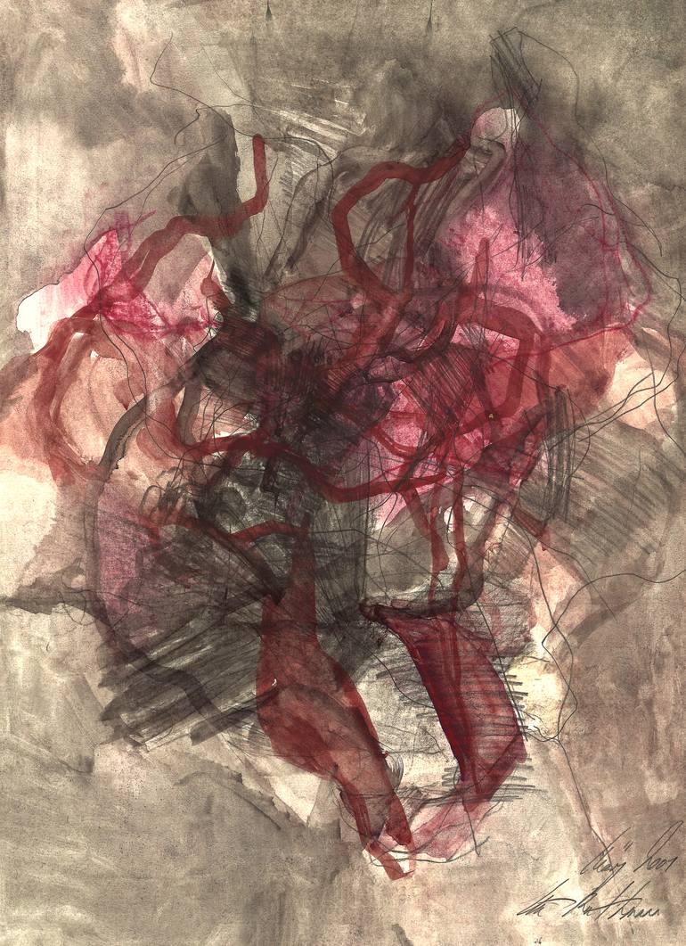 Graphite pencil, drawing charcoal, watercolor, gouache on paper 23,3" x 16,9" (59,1 x 42,9 cm) March 2001 Signed and dated on the front You will receive a Certificate of Authenticity.