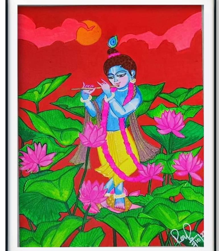 Shri Krishna Leela painting number 2. Use of florescent colours.