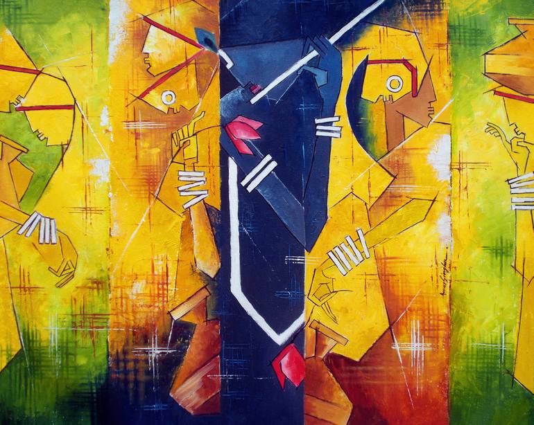 Born and raised in a baronial family in North Bengal, Amar Singha was fortunate to be thrust into a world of creativity at an early age, where colored pencils, crayons, and drawing sheets offered great solace from the kind of loneliness that accompanies stately culture. The flash of royalty that made up the world around him fostered his curiosity for deeper exploration, which he began to discover as soon as his pencils and crayons hit the paper. What was considered child’s play at that age catapulted him on a lifelong journey in search of greater truths, freedoms, and simple joys. Along the way, Singha picked up credentials from the Academy of Creative Art in Kolkata. In his final year of art school, he lost his father, which further flung him into the depths of an interior search—one that can best be described (insufficiently so) as a deep dive into the spiritual realm, an exploration into impermanence activated by those questions of life and death that plague us all. For about 16 years, Singha essentially disappeared from public life in order to listen closely for whispers of truth and emerged again using paints and brushes to translate the untranslatable through his art which he births in his home studio in Raghunathganj, a small village in West Bengal. STATEMENT - A conversation between ancestral Indian lineages and synthetic cubism allows me to prominent my emotions expressively. The use of colors demonstrates my sentiment that works to find hidden lofty things we usually ignore. The color itself becomes a subject that whispers for my sensation. Simplifying the composition produces uncluttered spaces that sometimes create a feeling of boundless joy followed by the expression of colors or sometimes inexplicable sensitivity of the subconscious mind. It also brings a calmness that immerses me deeply in the spiritual realm, followed by the past spiritual experience that makes sense of my creative spirit. A subtle emotional approach transforms my form into an abstraction that steadily expresses by line drawing. Drawing is a pivotal factor in my painting that help viewers discern the insides despite the abstract approach of my artwork. Amorphous brush strokes with acrylic paint create a little texture, but finally, it produces a calming smoothness that I enjoy. I then start drawing lines to make the details. Seeing how the object reveal under several abstract shapes in the painting cheers me.