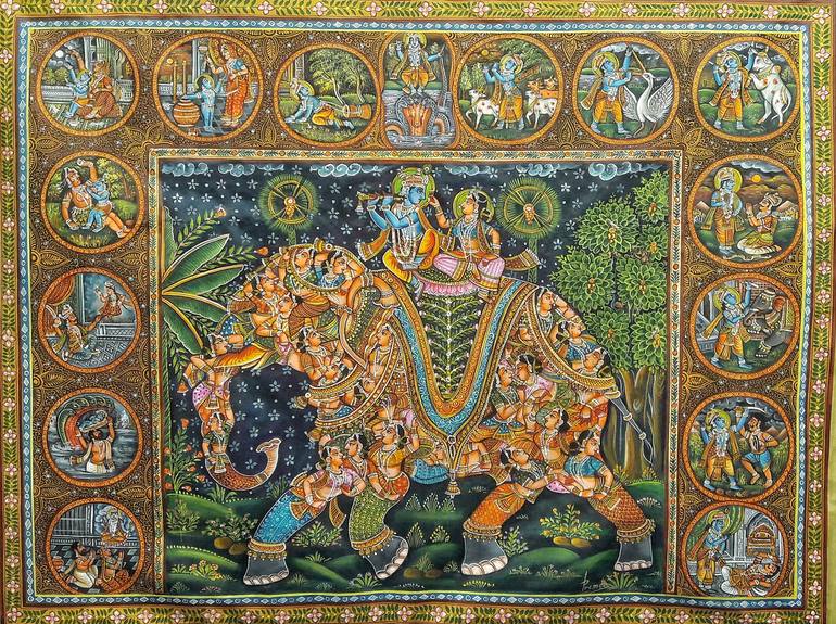 ***THIS IS BEAUTIFUL KRISHNA LEELA PAINTING MADE ON CANVAS *** ***SIZE: HIGHT: 42 IN ; WIDTH: 38 IN *** ***THIS IS ORIGINAL HANDMADE ARTWORK MADE BY ME. *** ** Krishna is a young business tycoon. Mohan works for Krishna. Both fall in love with the same woman Sita. Fate brings them to a moment whe...