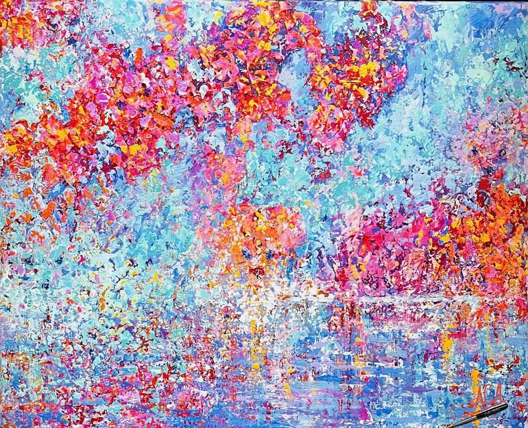 Born in 1963 in Paris, Nicole Azoulay has turned painting into a genuine artistic quest. From the very beginning, she immersed herself deeply in the exploration of techniques, driven by an insatiable curiosity for texture and color. After six years of rigorous training, she set aside her brushes for a small knife, a simple yet powerful tool that revolutionized her approach to creation. Painting exclusively with a knife, she sculpts her works with fluid and precise movements, transforming each canvas into a vibrant and textured masterpiece. Her creations, rich in reflections and light, reveal subtle buildings, hypnotic water patterns, and sometimes delicate animal forms—spontaneous discoveries within her artistic process. Nicole Azoulay meticulously works on each canvas, often on large formats, which she enhances with a radiant palette: deep reds, solar yellows, electric blues, and intense violets. Each piece invites the viewer into a luminous and immersive world, where emotion guides every stroke. Listed on the art market and celebrated for her unique style, Nicole Azoulay exhibits in prestigious venues such as Monaco, Tokyo, Miami, and the Carrousel du Louvre in Paris. Her works, highly sought after by collectors, resonate internationally, captivating and transforming spaces with their presence. Today, she continues to push the boundaries of her art, remaining true to her inexhaustibly rich universe. Nicole Azoulay is a member of the Taylor fundation.