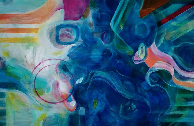 Motivated by observing the coral reefs and marine life. However, it is impossible to escape the impact of technology. These two components interact with one another in the abstract form. It is painted with acrylic and covered with acrylic varnish on the stretcher canvas. Hanging hardware is included...