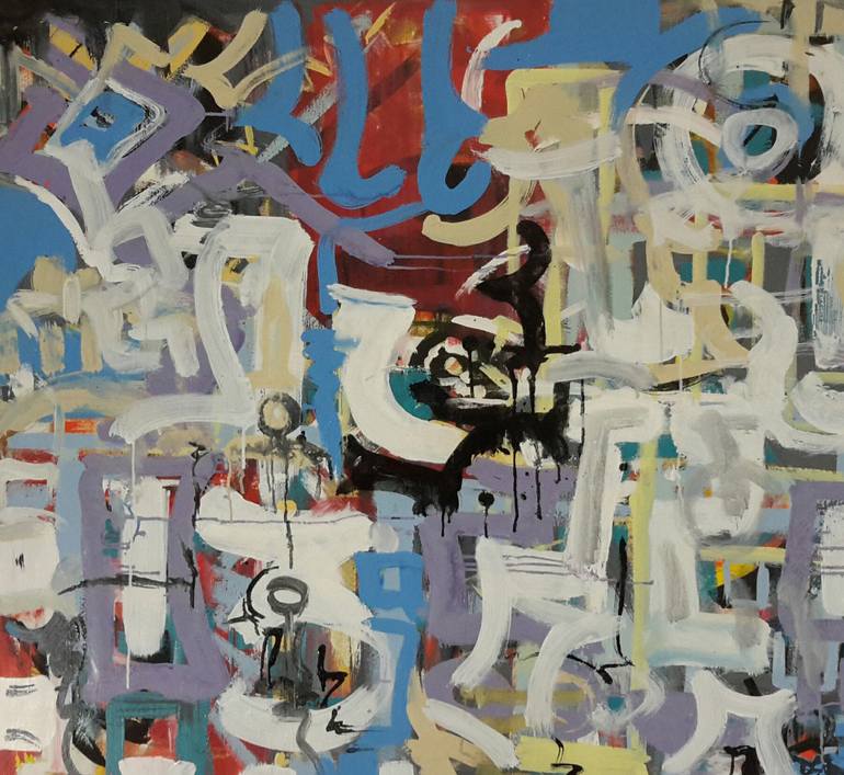 L'expression de la vie Acrylic and gesso on unstretched canvas Will be shipped rolled Varnished and certified This work is in line with " Greater than wisdom ' ' which I made 3 or 4 years ago. It was so bright then that I pulled it out from the site.To revive it, I just added black, white...