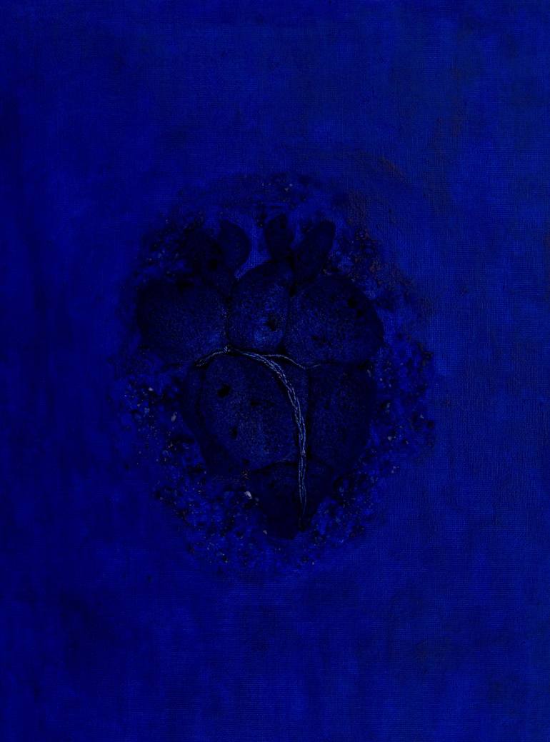 Tribute to Yves Klein. Three dimensional composition of sea sponges and fine rope into a heart shape. The texture around the heart is a mixture of sea salt granules, transparent glue and acrylic. I used ultramarine blue and decided to make it look more heterogeneous than what was seen in Yves painti...