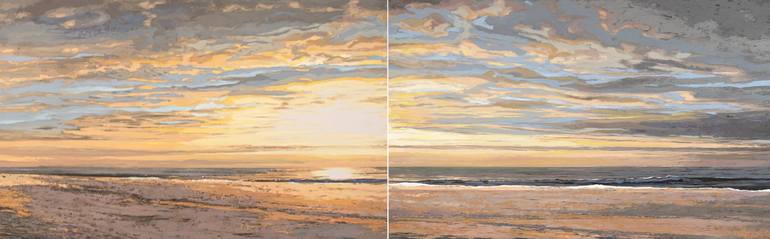 The Sunrise, fleeting bright moments. I set out at pre-dawn and do 10 or 12 small watercolors and photos to catch tthe changing light. I take the photos back to the studio and stretch out those moments.