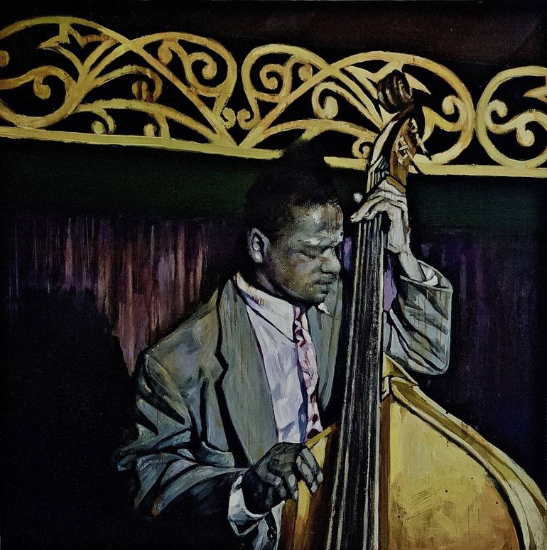 The atmosphere of old jazz clubs. The instrument : the double bass. Contrasts, color. L'ambiance des anciens clubs de jazz. L'instrument : la contrebasse. Les contrastes, la couleur.