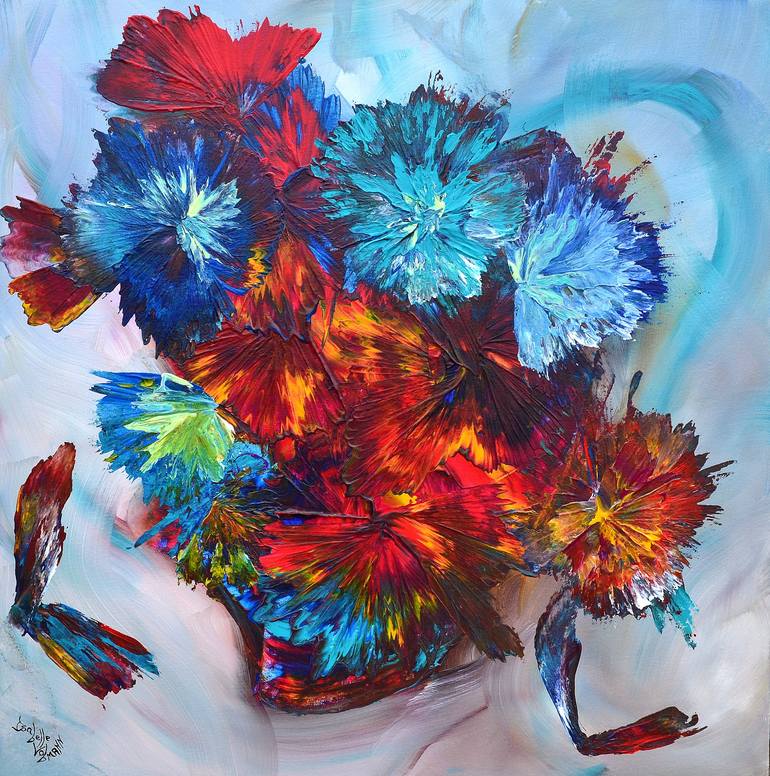 Isabelle, the sun in person. In the blink of an eye, Isabelle makes you forget all the daily worries and invites you to enter her colorful universe where everything is joy and wonder. She is not out of touch with reality, but she always sees the bright side of things and knows how to restore your confidence in the future and the strength to overcome obstacles. "I paint as I am," she often says. His works are in total harmony with his being, lively, cheerful, colorful, imprinted with very real emotions, supported by a free but controlled style, just enough to maintain balance and harmony. Isabelle's works are astonishing, lively and elusive, built in her image. "I paint as I am" she often says... Having lived several years in Florida, Isabelle will know how to inundate you with the sun and the joie de vivre that she has accumulated there.