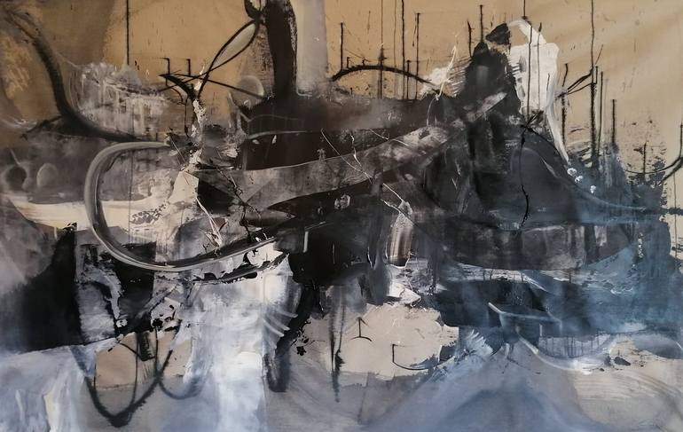 Stefano Mazzolini was born in Parma in 1968. At the age of nine he was nominated for the "Design and City" award organized by the municipality of Parma. In 1989 he graduated as a Master of Art in pictorial decoration at the Paolo Toschi Institute in Parma. He dedicated himself for several years to the restoration and conservation of wall paintings. In 1990 he first lived in London and subsequently moved to New York for a short period. He manifests his graphic style in a gestural and immediate way, the dynamic line creates drops of acrylic on paper. Piloted stains well managed without following drawings and projects, thus replacing the brush with ampoules and spatula. Intriguing portraits, fairy-tale environments and mythological animals are formed, fantastic figures animate a controlled chaos. He creates silhouettes of androgynous subjects, using paper collages to assemble and glue layers of faces that are always hidden and minimal. With mixed acrylic colors and enamels he obtains fabrics, colored skins which he applies on canvas wrapping the work, metal grafts, application of various elements, the subjects are always deliberately ambiguous and free to be interpreted, input to reach our dreams. By cutting the canvas and superimposing it he constructs the painting into sculpture. He manipulates the fabric of the painting bringing the image to three-dimensionality. While on the canvas with oil he expresses his vision of the hidden, evanescent color backgrounds, shaded by transparencies but precise in representing objects, people and intrinsic things and formed by a very complex structure like everything that lives and forms. Hints of cities, landscapes between nature and animals that empathetically interact with detailed objects, convulsive scenarios of neo-modern plans and perspectives, where the vision of man is absent, but still rich in his humanity in every circumstance. With sculpture he strengthens artistic identity. Thus inventing a new three-dimensional representation, an exclusive invention of Lycra sculpture. Resin, a treated and consolidated synthetic fabric, offers a new conception of sculpture, human and alien figures, stylized silhouettes, always suspended between the sacred and the profane, draperies to form characters out of past and revisited in a modern key.